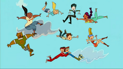 It is sung by the contestants in super happy crazy fun time japan, while they are all falling out of the total drama jumbo jet over japan.