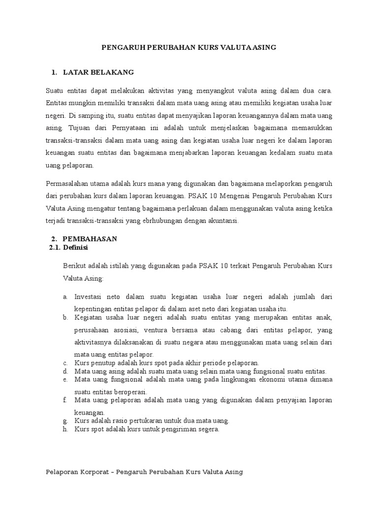 Bab 12 Blk Pasar Valuta Asing Doc from data03.123doks.com Valuta asing atau valas adalah suatu alat yang digunakan sebagai pembayaran transaksi dalam perdagangan internasional. Sehingga tak bisa dipungkiri jika negara asal tetap memberikan pengaruh sukses tidaknya seorang trader. Dalam pengertian lain, valuta asing adalah pertukaran atau konversi. Valuta asing atau valas adalah mata uang asing atau negara lain yang diterima, dipakai, dan diakui sebagai alat pembayaran sah dalam perdagangan internasional. Kurs valuta asing adalah harga yang dibayar untuk satu unit mata uang asing. Valuta asing adalah mata uang yang digunakan serta diterima oleh banyak negara dalam perdagangan internasional. Valuta asing atau valas adalah tukar menukar antara satu mata uang dengan mata uang dari negara lain. Valuta asing atau biasa disingkat valas adalah mata uang yang digunakan atau diakui dalam perdagangan internasional.